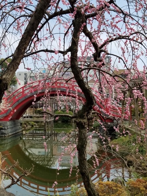 亀戸天神の境内には300本を越す梅が植えられ、紅白の花が咲き始めていました。