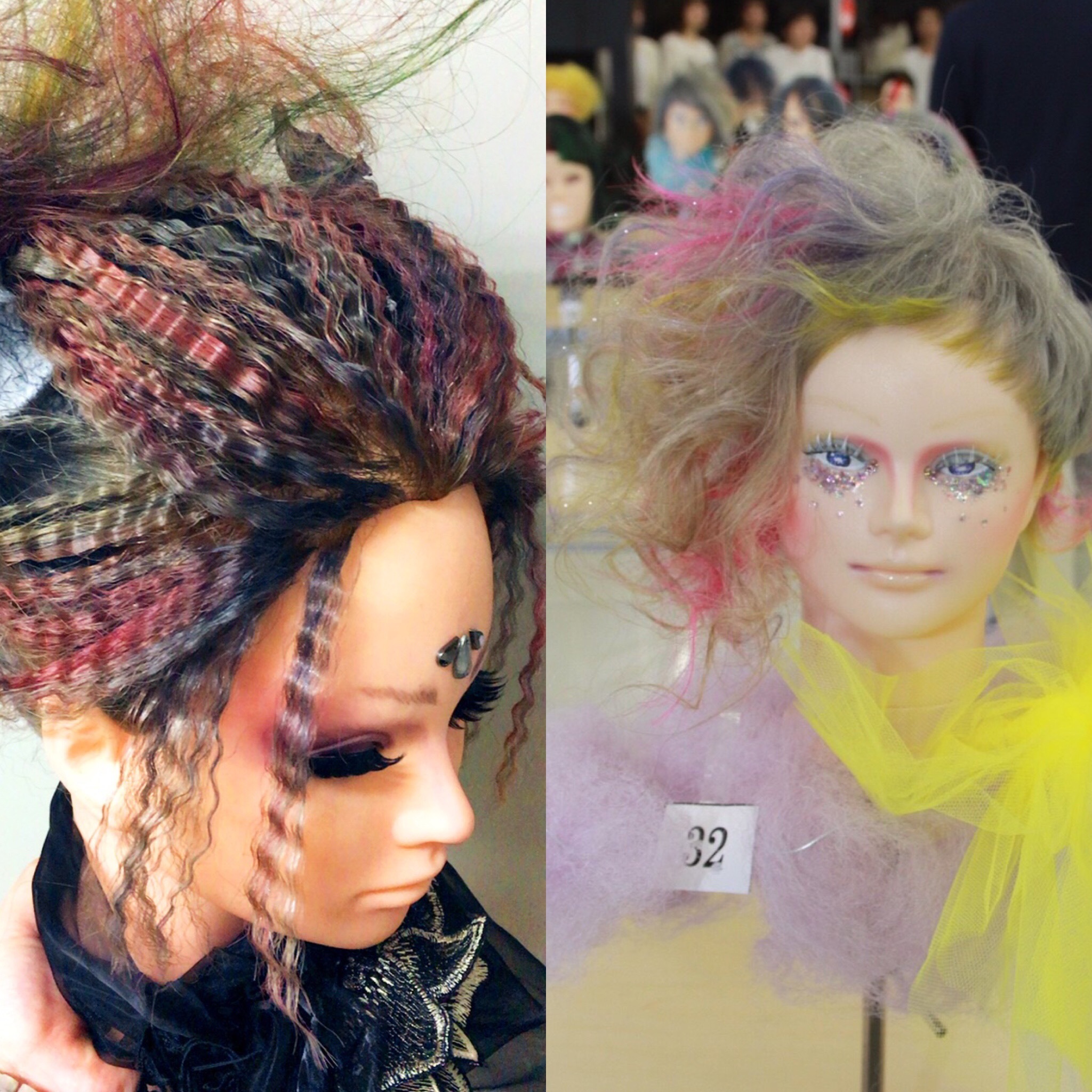 普段営業ではできないクリエイティブなスタイルを創るコンテストです。写真は前回私が作ったアップ部門とカット部門の作品です!他にも着付けやモデルさんのカットをするものなどなどさまざまなコンテストで創造力や技術を磨いています!