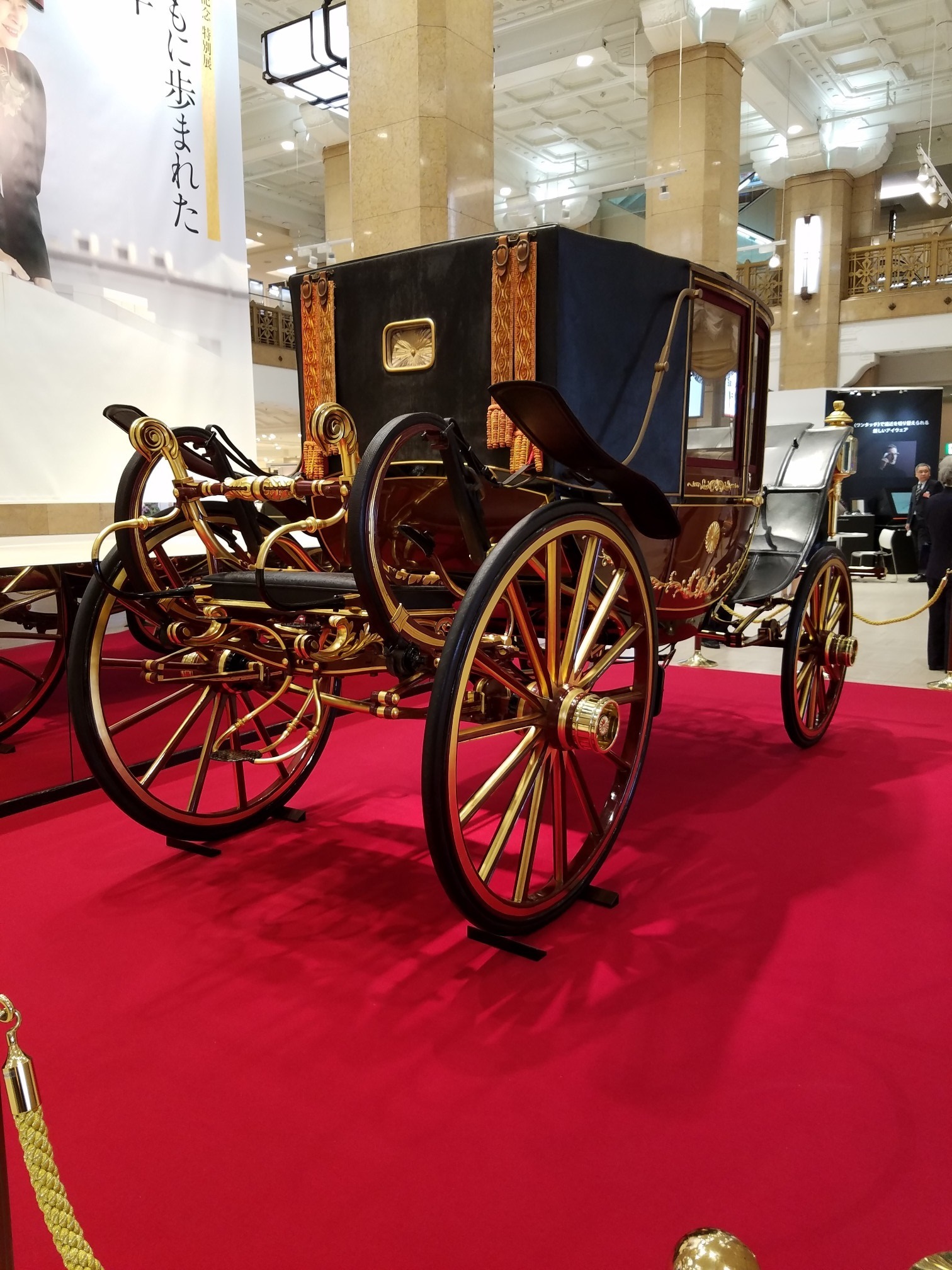 日本橋高島屋本館一階には御成婚パレードで使用された儀装馬車と同型の馬車が展示されています。